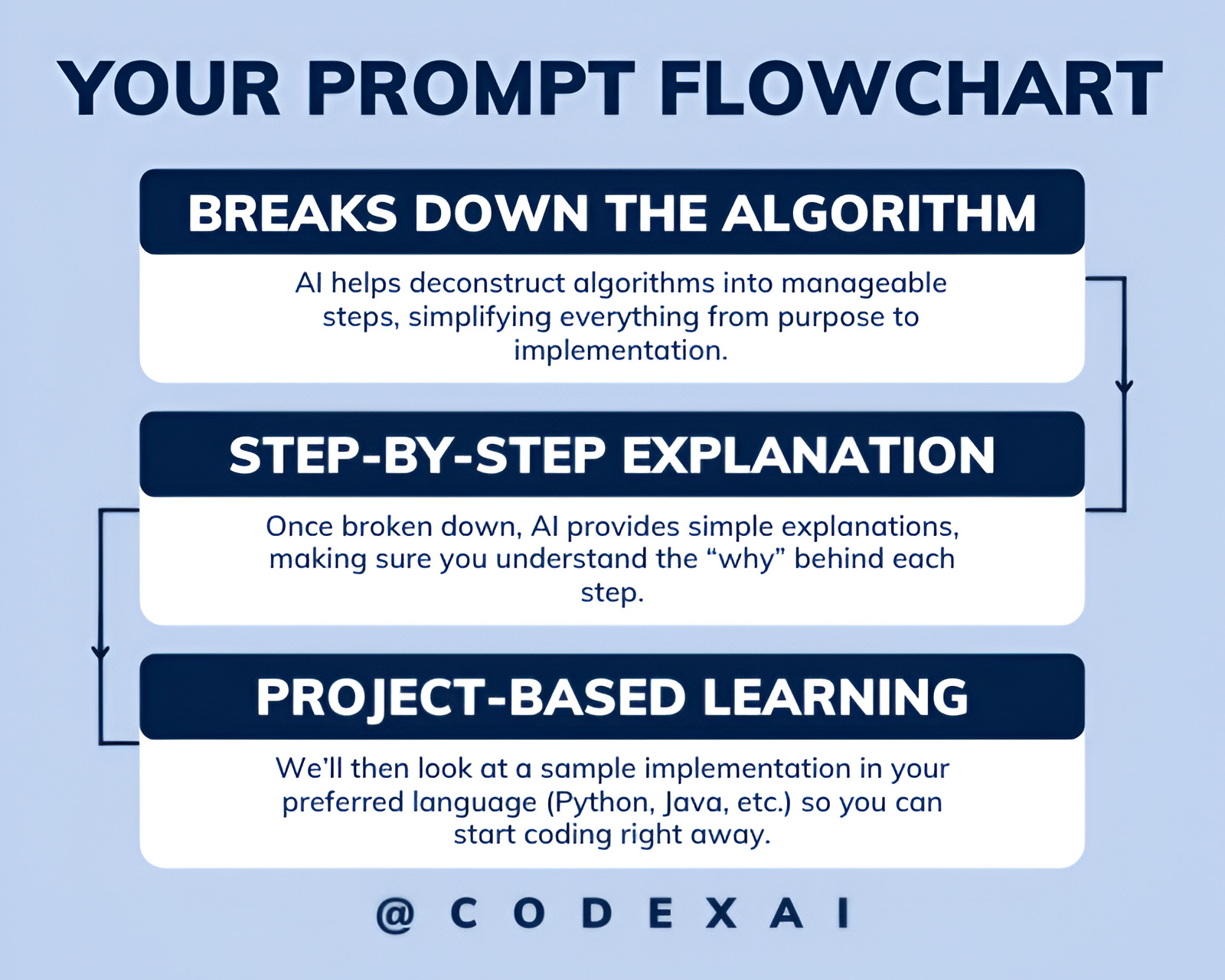 Prompt to visualize complex algorithms and practice it step-by-step.