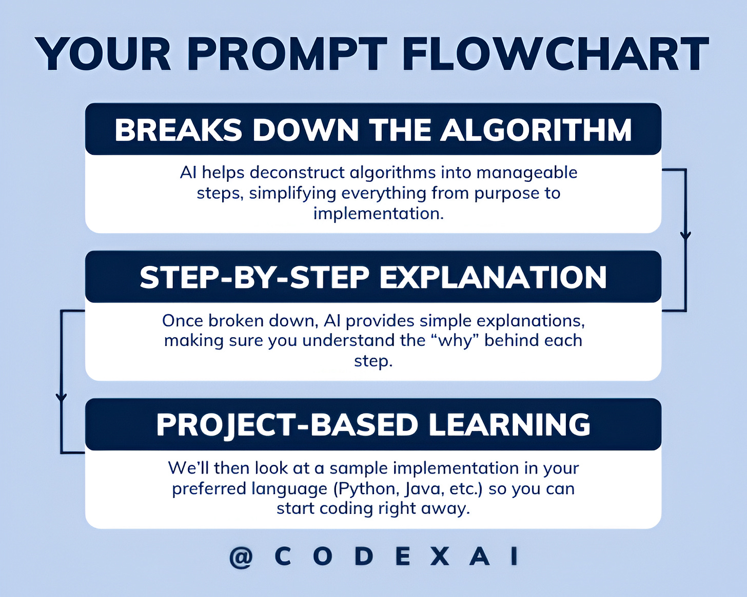 This prompt is your game-changer. Just swap in [Algorithm] and [Programming Language], and youâre ready to dominate algorithms. Itâs your blueprint to mastering complex algorithms, broken down into simple, digestible steps.